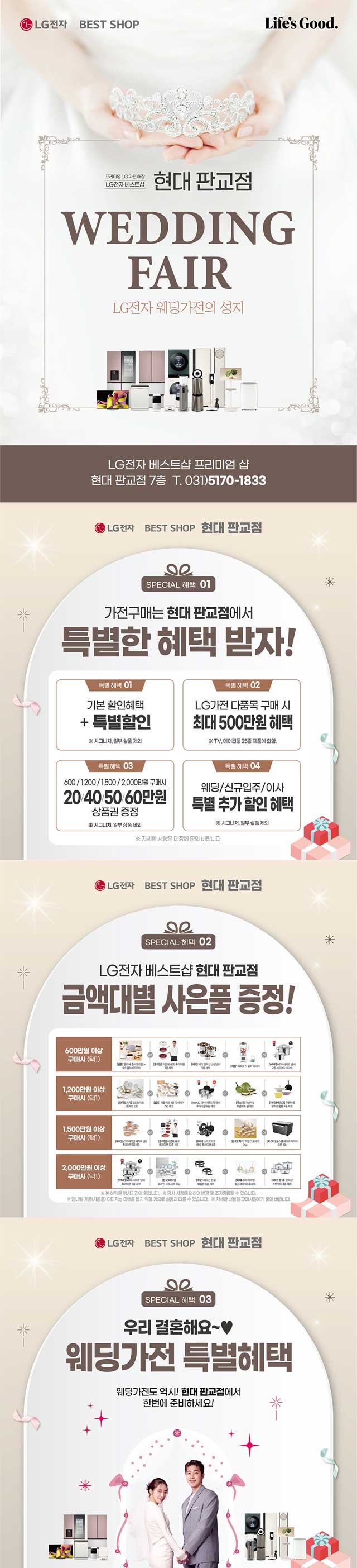 '홍스웨딩'(이하 '회사'로 표기)은 고객의 개인정보를 보호하기 위해 노력하고 있으며 통신비밀보호법, 정보통신망 이용촉진 등의 법률을 준수하고 있습니다. 회사는 개인정보취급방침을 통해 고객이 제공하는 개인정보의 용도와 개인정보보호 조치에 대해 알려드립니다. 본 방침은 2022년 01월 01일부터 시행됩니다. 1. 개인정보의수집ㆍ이용목적 1)서비스 이용에 따른 본인식별, 실명확인, 가입의사 확인 이용 2)고지사항 전달, 불만사항의 의사소통 경로 확보, 물품배송시 정확한 배송지 정보 3)신규서비스 등 최신정보 안내 및 개인맞춤서비스 제공을 위한 자료 4)웨딩상담등 문의사항에 관한 정확한 답변 5)불량회원 부정이용 방지 및 비인가 사용방지 6)결혼준비 진행관련 제휴사 상품안내 및 정보제공 운영 7)기타 원활한 양질의 서비스 제공 등 2.수집하는 개인정보의 항목 1)성명, 연락처, 성별, IP정보, 결혼예정일, 방문예정일 그외 선택항목 3.개인정보의 보유 및 이용기간 1)원칙적으로 개인정보의 수집 또는 제공받은 목적 달성 시 지체없이 파기합니다. 2)전자상거래에서의 소비자보호에 관한 법률 등 타 법률에 의해 보존할 필요가 있는 경우에는 아래와 같이 일정기간 보존합니다. 가. 계약 또는 청약철회 등에 관한 기록 - 보존 이유 : 전자상거래 등에서의 소비자보호에 관한 법률 - 보존 기간 : 5년 나. 대금결제 및 재화 등의 공급에 관한 기록 - 보존 이유 : 전자상거래 등에서의 소비자보호에 관한 법률 - 보존 기간 : 5년 다. 소비자의 불만 또는 분쟁처리에 관한 기록 - 보존 이유 : 전자상거래 등에서의 소비자보호에 관한 법률 - 보존 기간 : 3년 라. 본인 확인에 관한 기록 - 보존 이유 : 정보통신 이용촉진 및 정보보호 등에 관한 법률 - 보존 기간 : 1년 5.개인정보 제3자 제공 동의 1) 개인정보를 제공받는 자 : 엘지전자(주) 2) 제공항목 : 이름, 성별, 휴대폰 번호, 예식일 3) 이용목적 : 혼수 가전 제품 판촉 관련 TM/MMS 업무 시행 4) 보유 및 이용기간 : 6개월 ※ 귀하께서는 귀하의 개인정보를 제3자에게 제공하는 것에 대한 동의를 거부하실 수 있으나, 이는 TM 등 서비스 제공에 필수적인 제공이므로, 동의를 거부하실 경우 서비스 이용 등이 제한됩니다. 기타 개인정보침해에 대한 신고나 상담이 필요하신 경우에는 아래 기관에 문의하시기 바랍니다. 1. 개인분쟁조정위원회 (1336) 2. 정보보호마크인증위원회 (02-580-0533~4) 3. 대검찰청 인터넷범죄수사센터 (02-3480-3600) 4. 경찰청 사이버테러대응센터 (02-392-0330) 사이트에 링크되어 있는 웹사이트에서 개인정보를 수집하는 행위에 대해서는 본 '사이트 개인정보취급방침'이 적용되지 않음을 알려 드립니다.